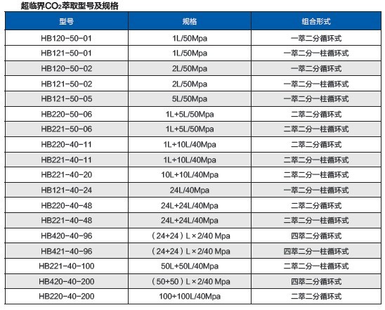 超臨界CO2萃取型號(hào)及規(guī)格